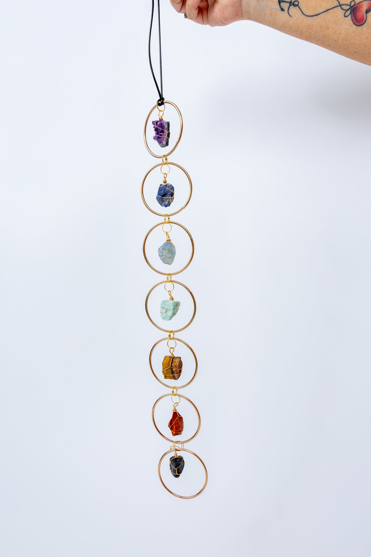 Designed to bring both earthy elegance and energetic presence, this piece is perfect for hanging in a window, entryway, or sacred corner. Each stone carries its own vibration, inviting grounding, protection, inspiration, and harmony into your environment.